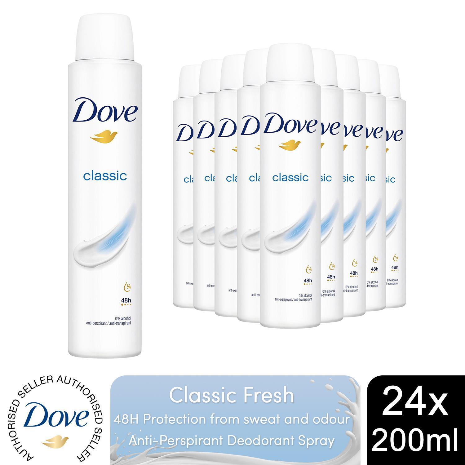 Dove Classic Anti-Perspirant with 48H Sweat Protection Deo for Women 200ml, 24pk