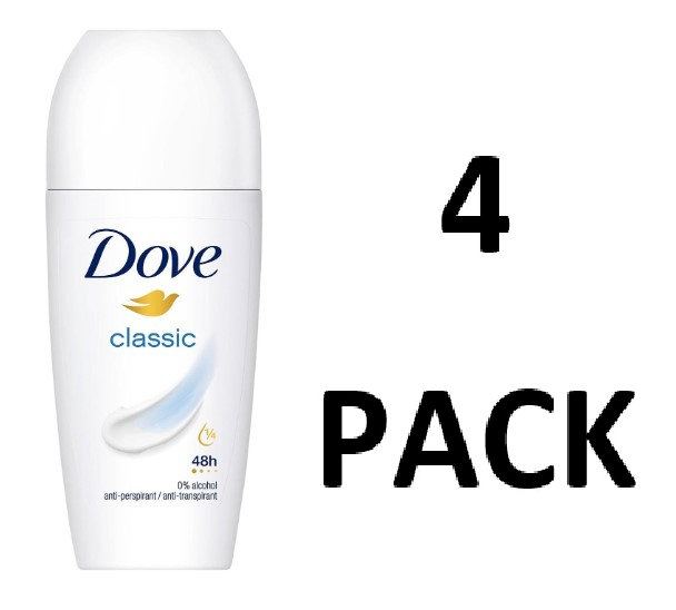 4 x Dove Classic Roll On Anti-Perspirant 48H of Sweat & Odour Protection, 50ml