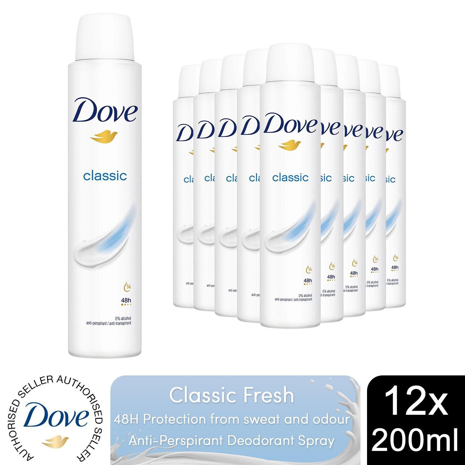 Dove Classic Anti-Perspirant with 48H Sweat Protection Deo for Women 200ml, 12pk