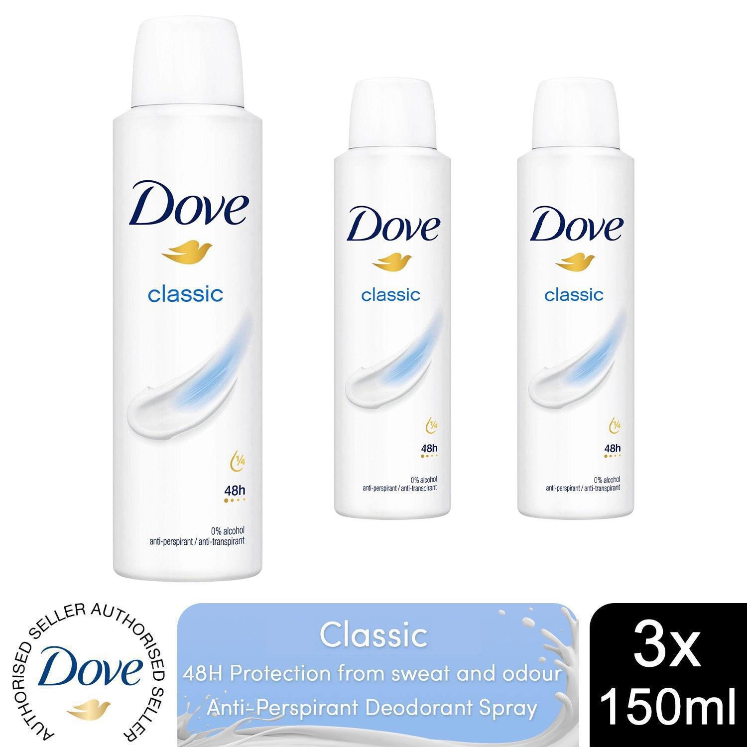 Dove Classic Anti-Perspirant with 48H Sweat Protection Deo for Women 150ml, 3pk