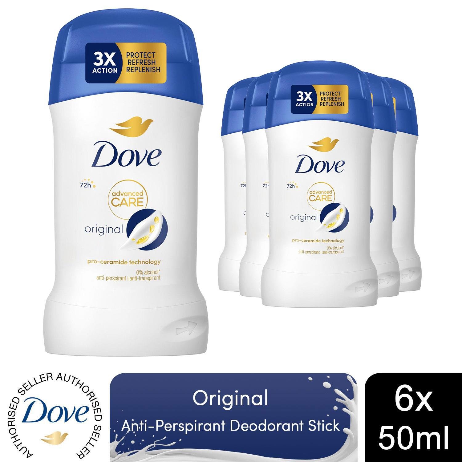 Dove Women Anti-Perspirant Deodorant Stick w/ 48H Sweat Protection 50ml, 6 Pack
