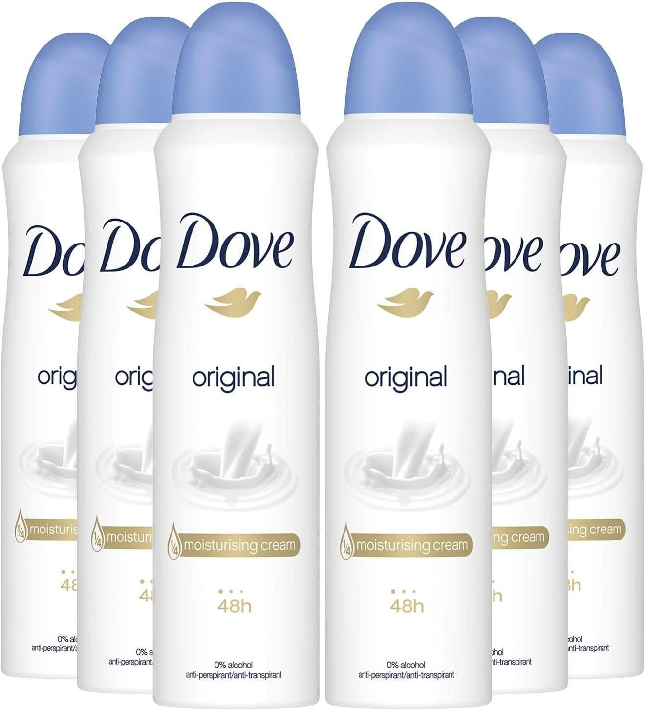 6 x 150ml Dove Original Anti-Perspirant Deodorant Spray 0% Alcohol