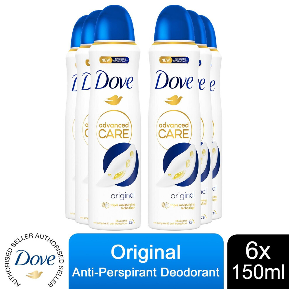 6x Dove Anti-Perspirant Advanced Care Original 72H Deodorant for Women, 150ml