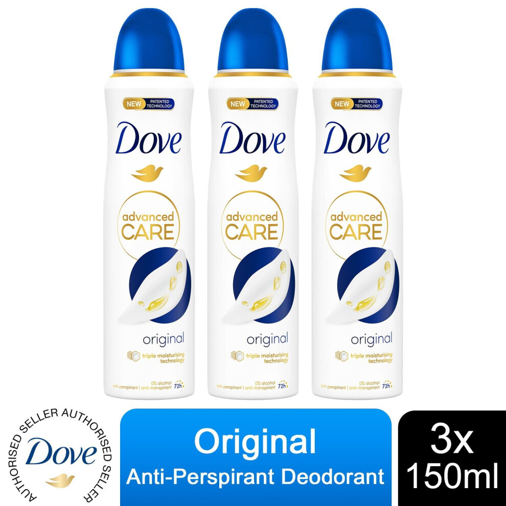 3x Dove Anti-Perspirant Advanced Care Original 72H Deodorant for Women, 150ml