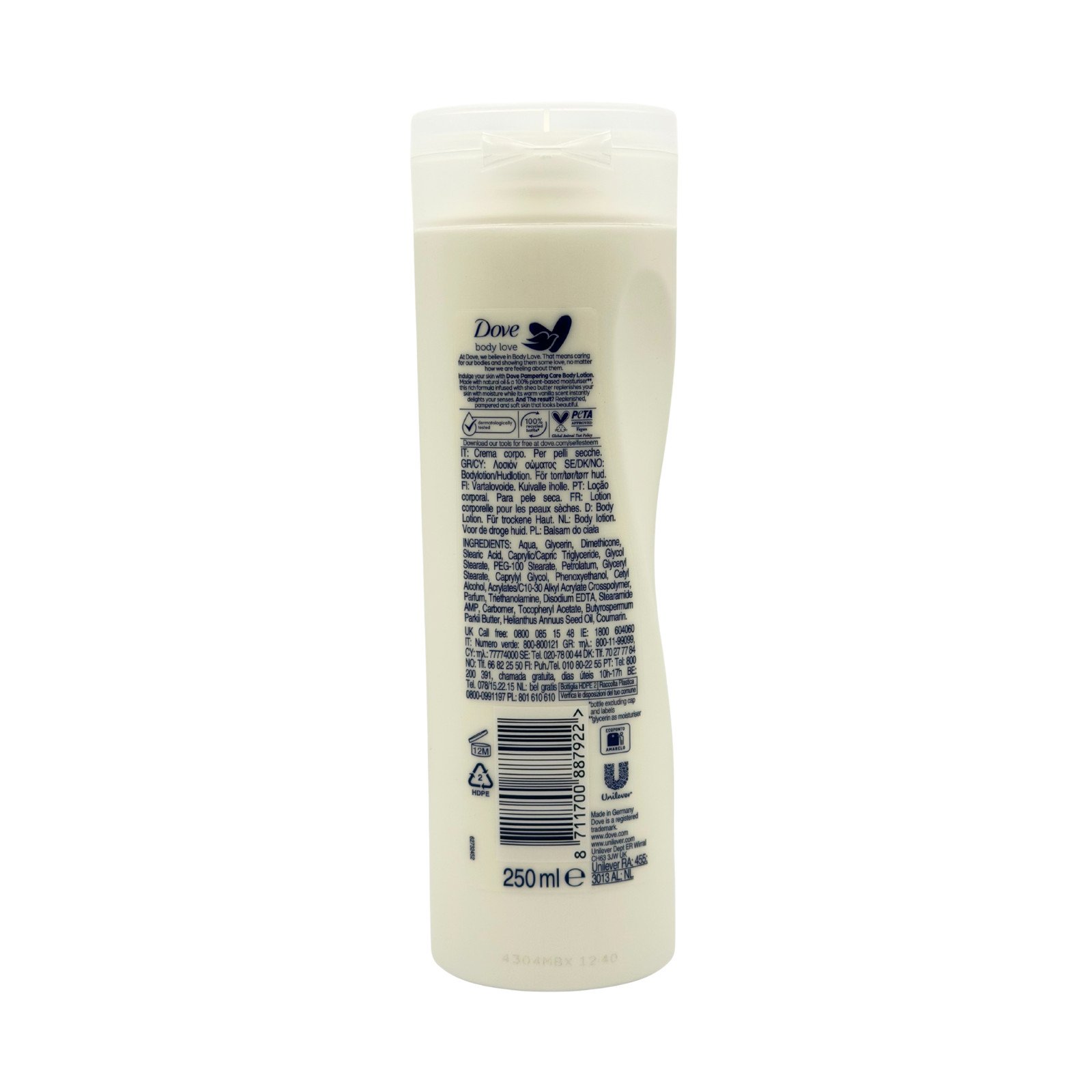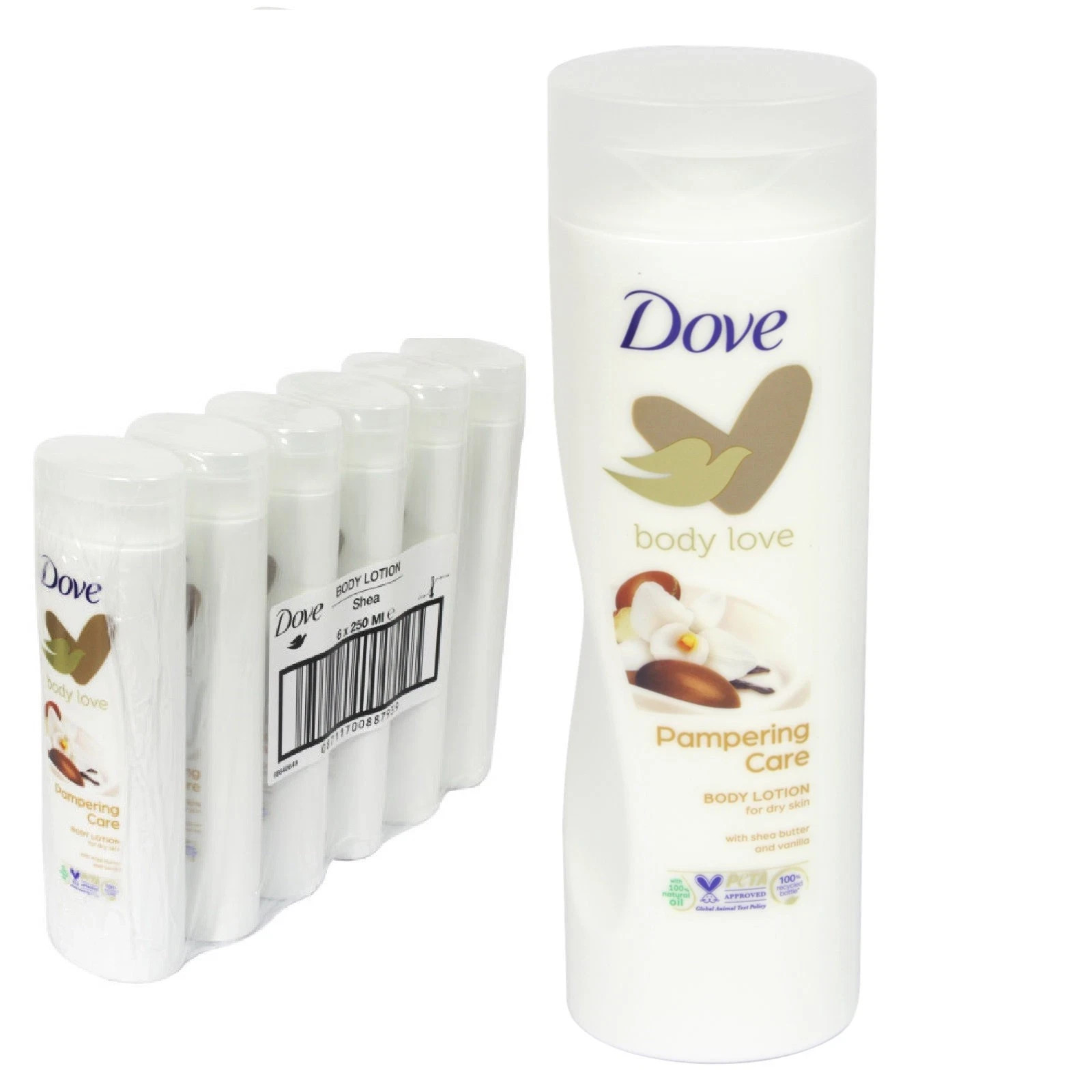 6 x Dove Body love Lotion Pampering care Shea Butter with vanilla 250ml VEGAN