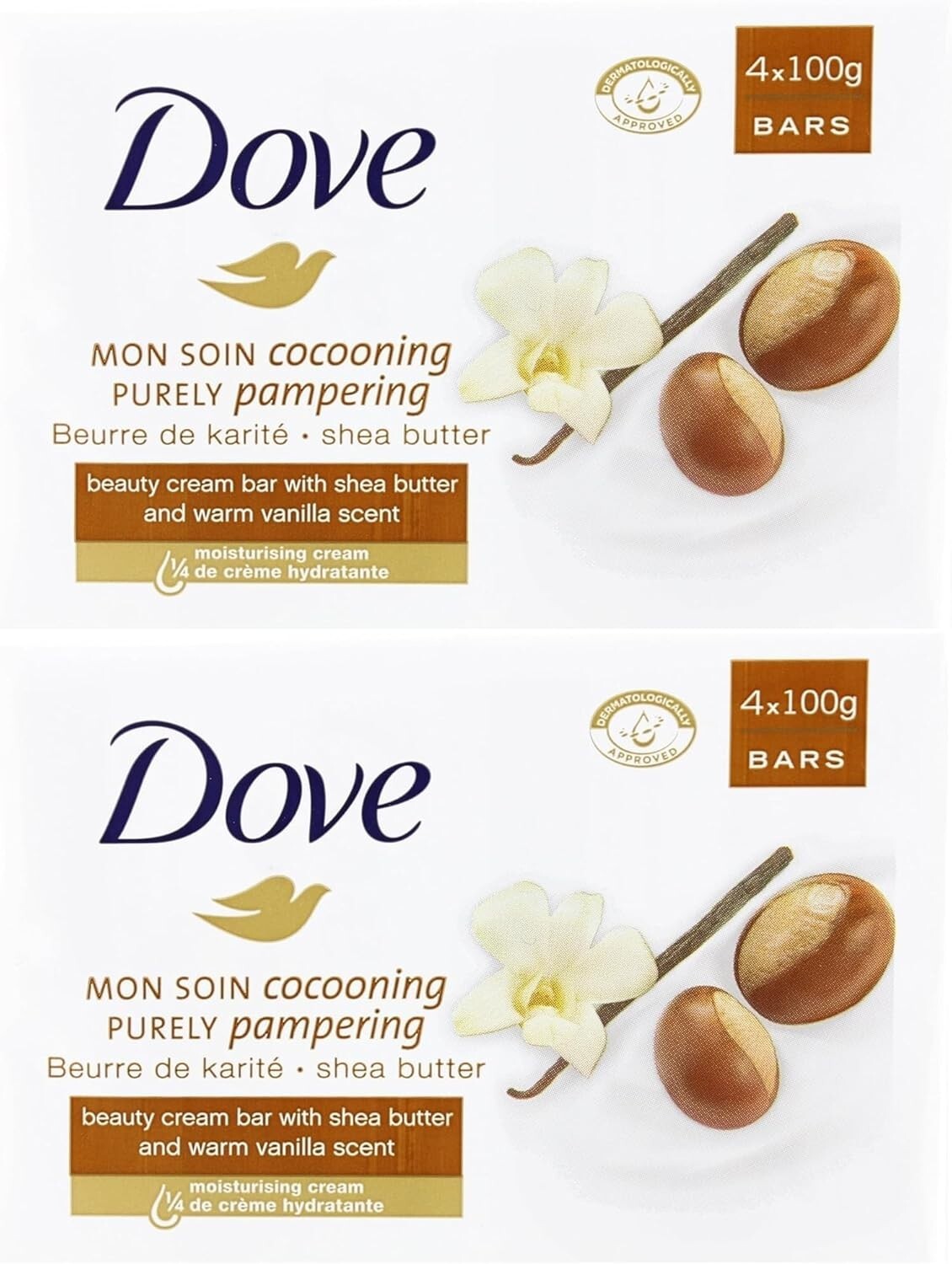 (PACK OF 2) Dove Pampering Shea Butter & Vanilla Beauty Cream Soap Bar 125g |For All Skin Types |¼ Moisturizing Cream |Hand & Body Wash