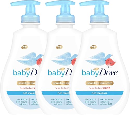 Baby Dove Rich Moisture Baby Care Set – 3-Piece Bundle: Tear-Free Head to Toe Wash (400ml), Gentle Shampoo (400ml), & Moisturising Lotion (200ml) suitable for Sensitive Skin