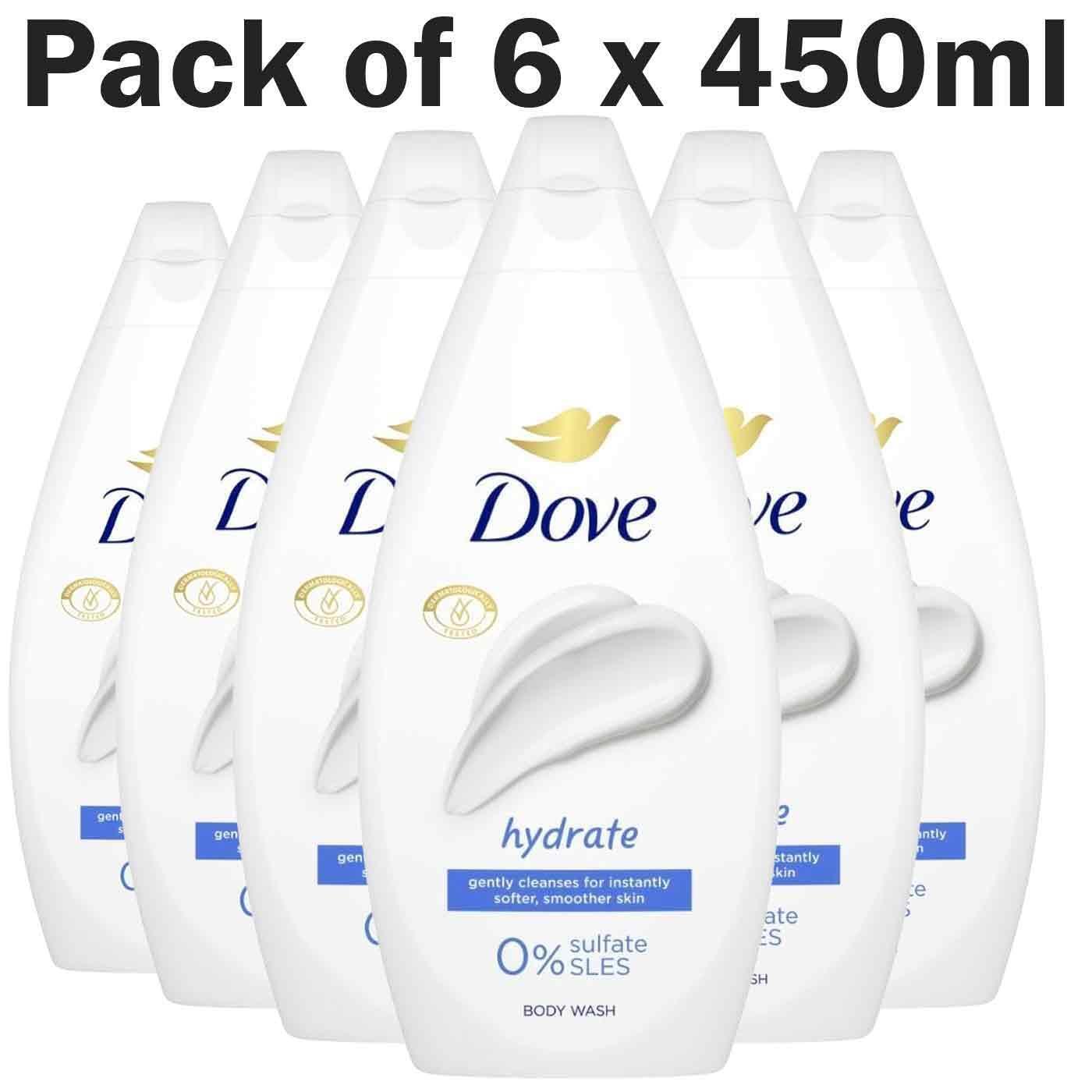 Dove Hydrate Body Wash Soft Smooth Creamy Gentle Skin Free Sulfate Pack 6x450ml