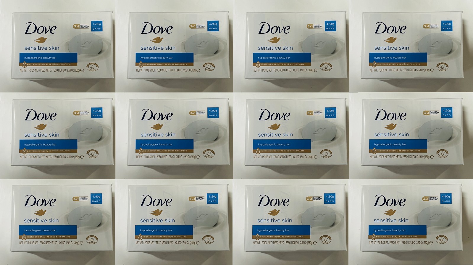 12 x 90g Dove Sensitive Skin Soap Hypoallergenic Beauty Bar