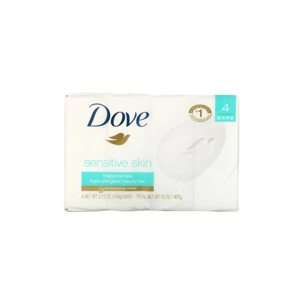 Dove, Sensitive Skin Beauty Bar, Fragrance Free, 4 Bars, 106g Each