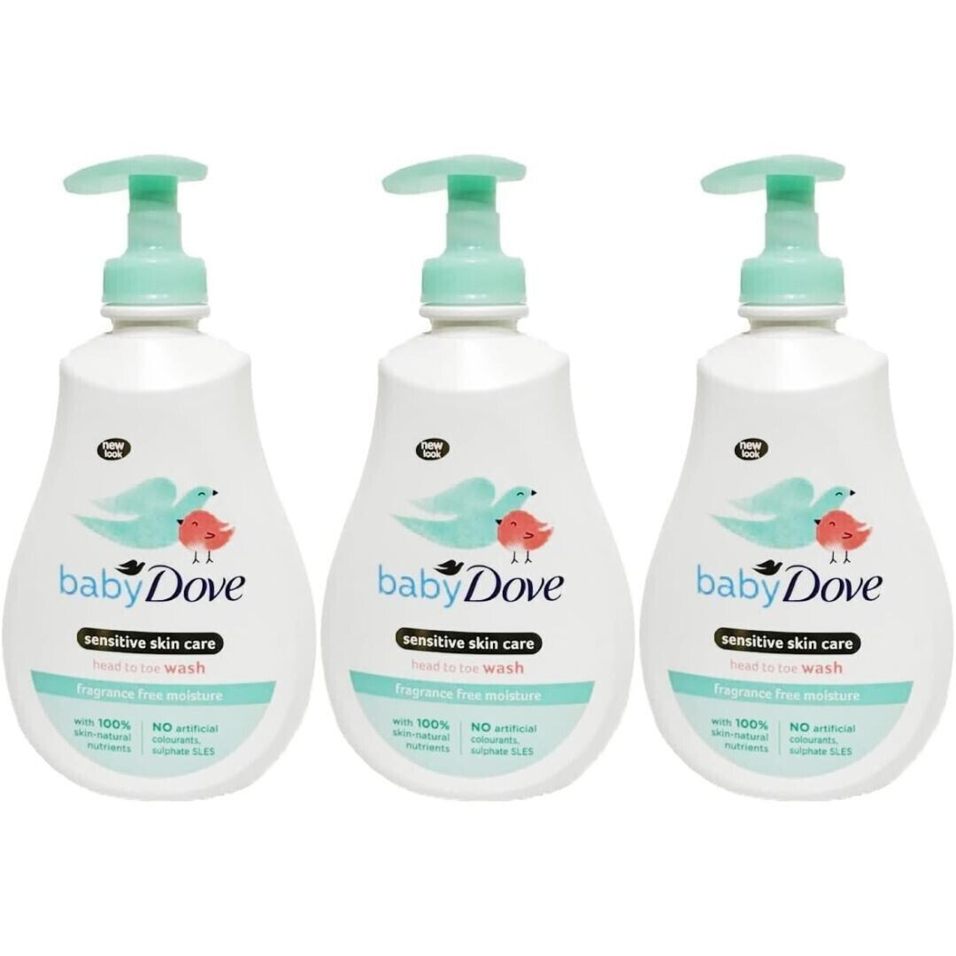 Baby Dove Fragrance-Free Head to Toe Wash - Gentle & Soothing Hair and Body Wash for Babies, Nourishing & Moisturising for Sensitive Skin, Tear-Free Formula, Ideal for Newborns - 400ml, Pack of 3