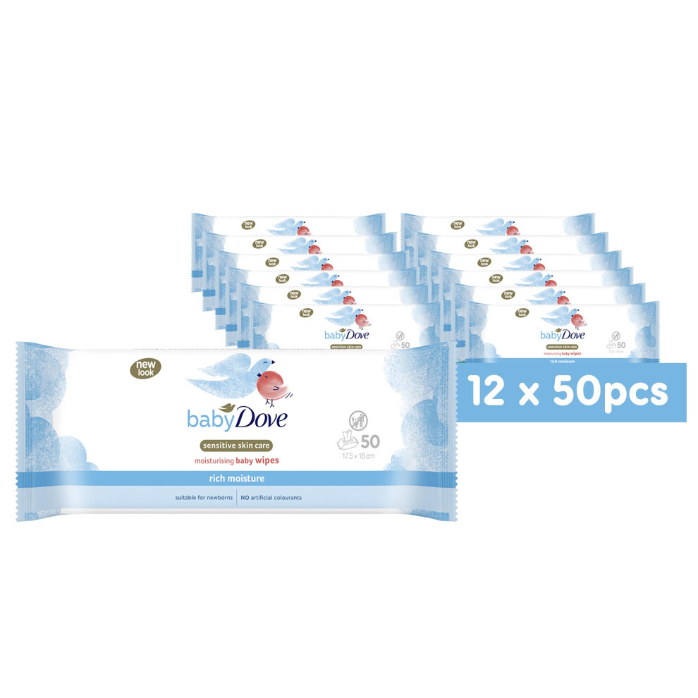 Baby Dove Sensitive Skin Care Baby Wipes, Rich Moisture - Soft Cleansing, Moisturising & Gentle Wet Tissue for Newborns & Infants, Perfect for Nursery & Travel Essentials, Resealable - Pack of 12