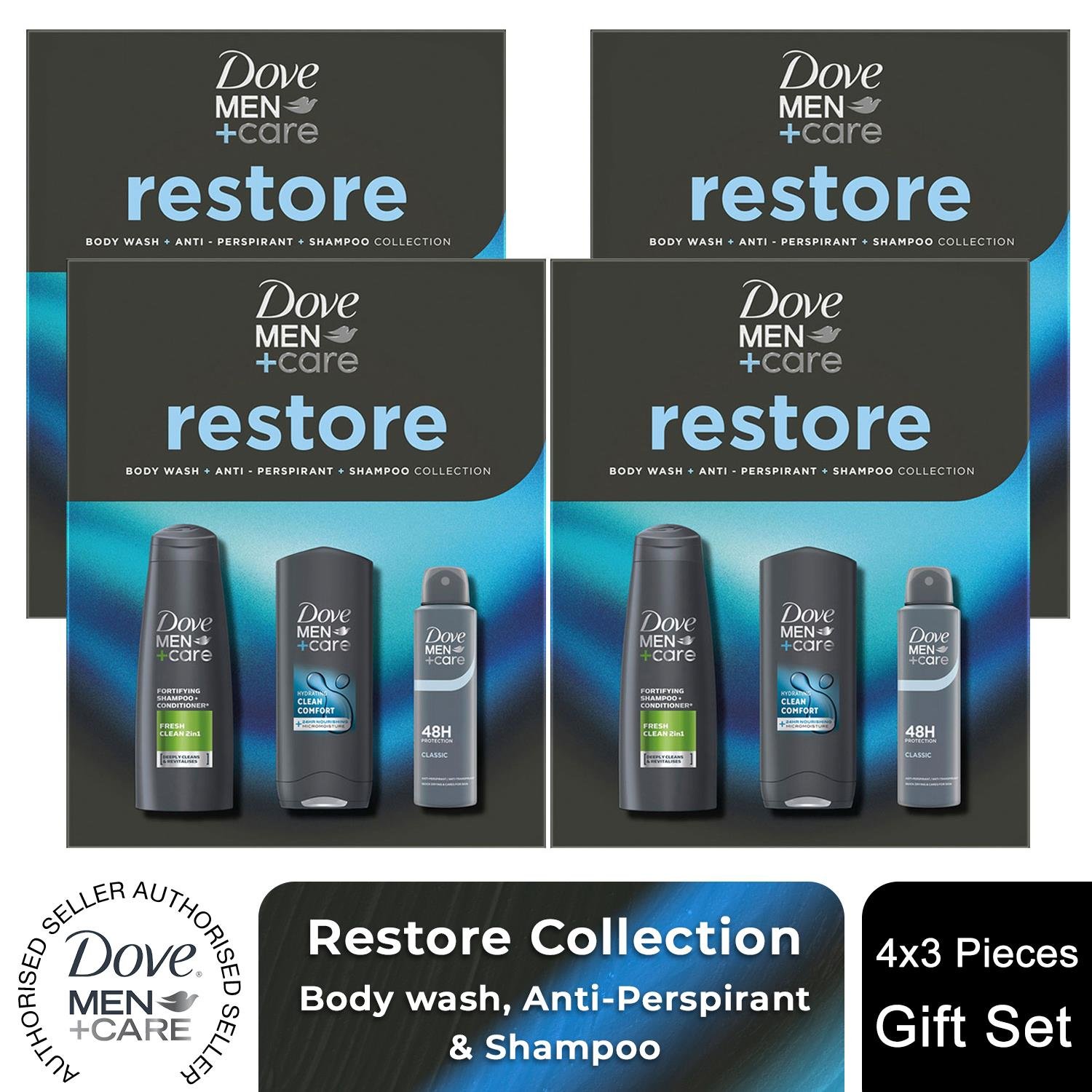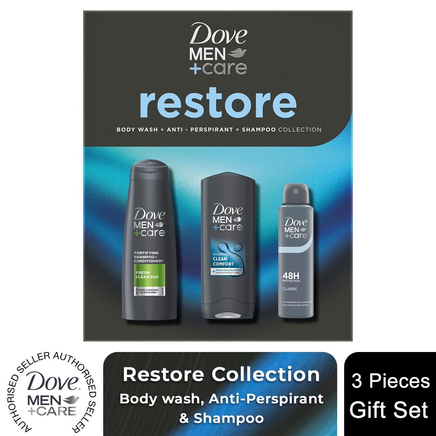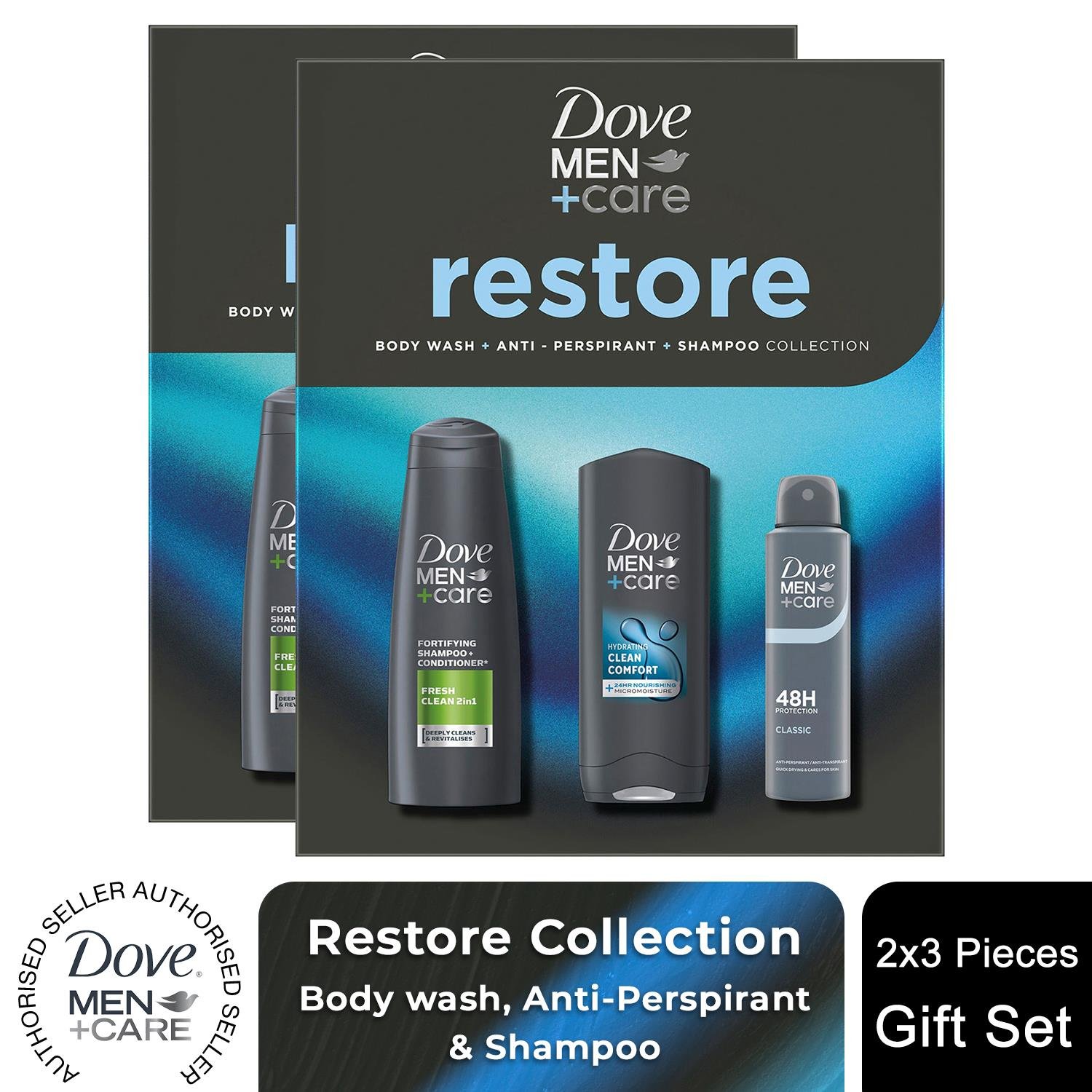 Dove (Buy 2) Men+Care Gift Set Restore Trio - Bodywash, Classic Deodorant, Shampoo