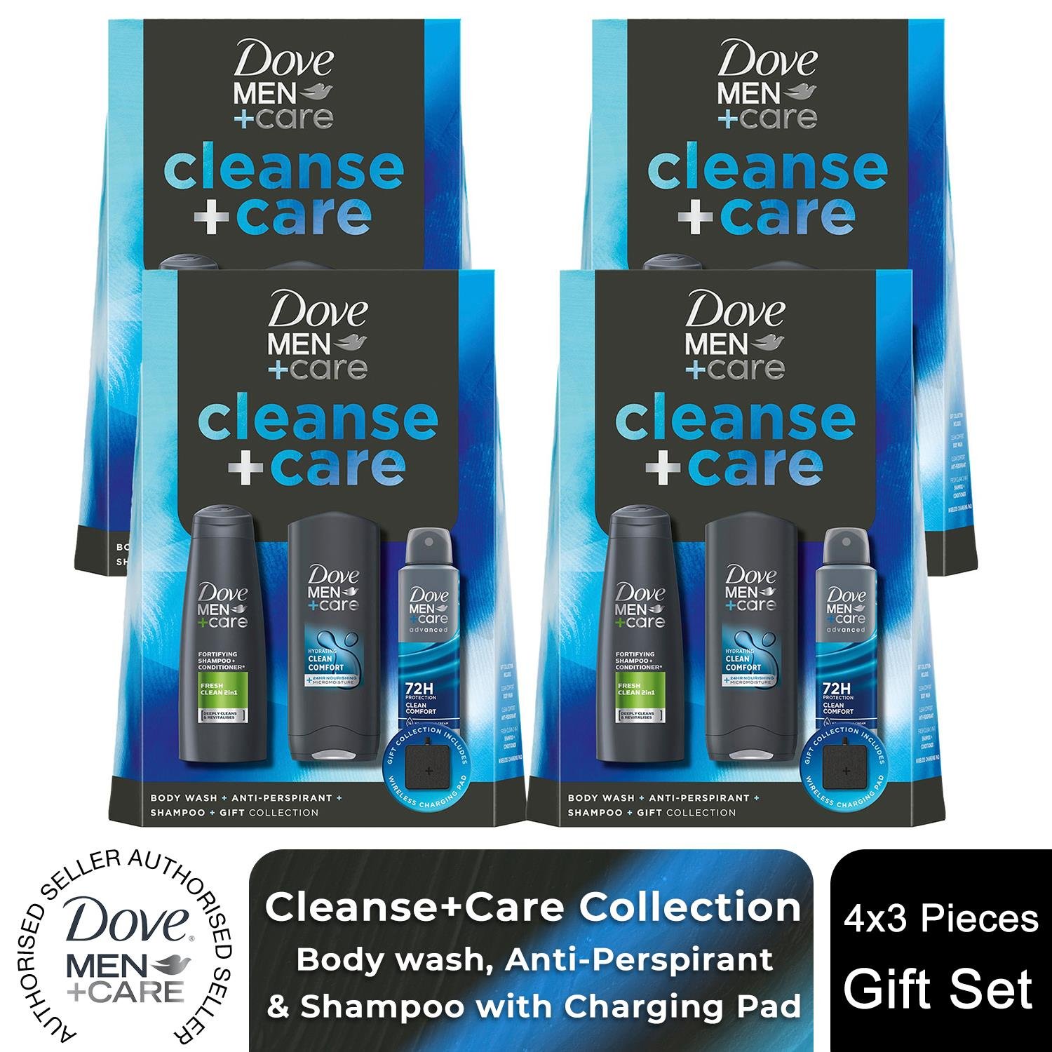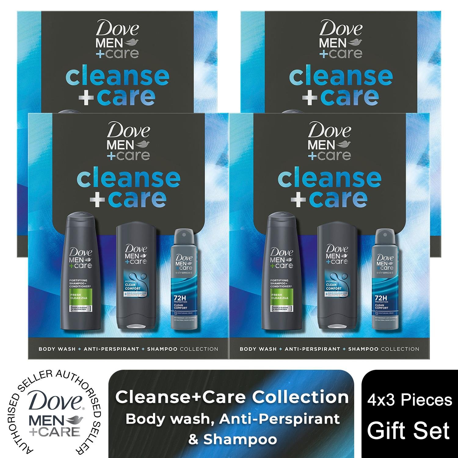 Dove (Buy 4) Men+Care Cleanse+Care Gift Set with Bodywash, Deodorant & Shampoo