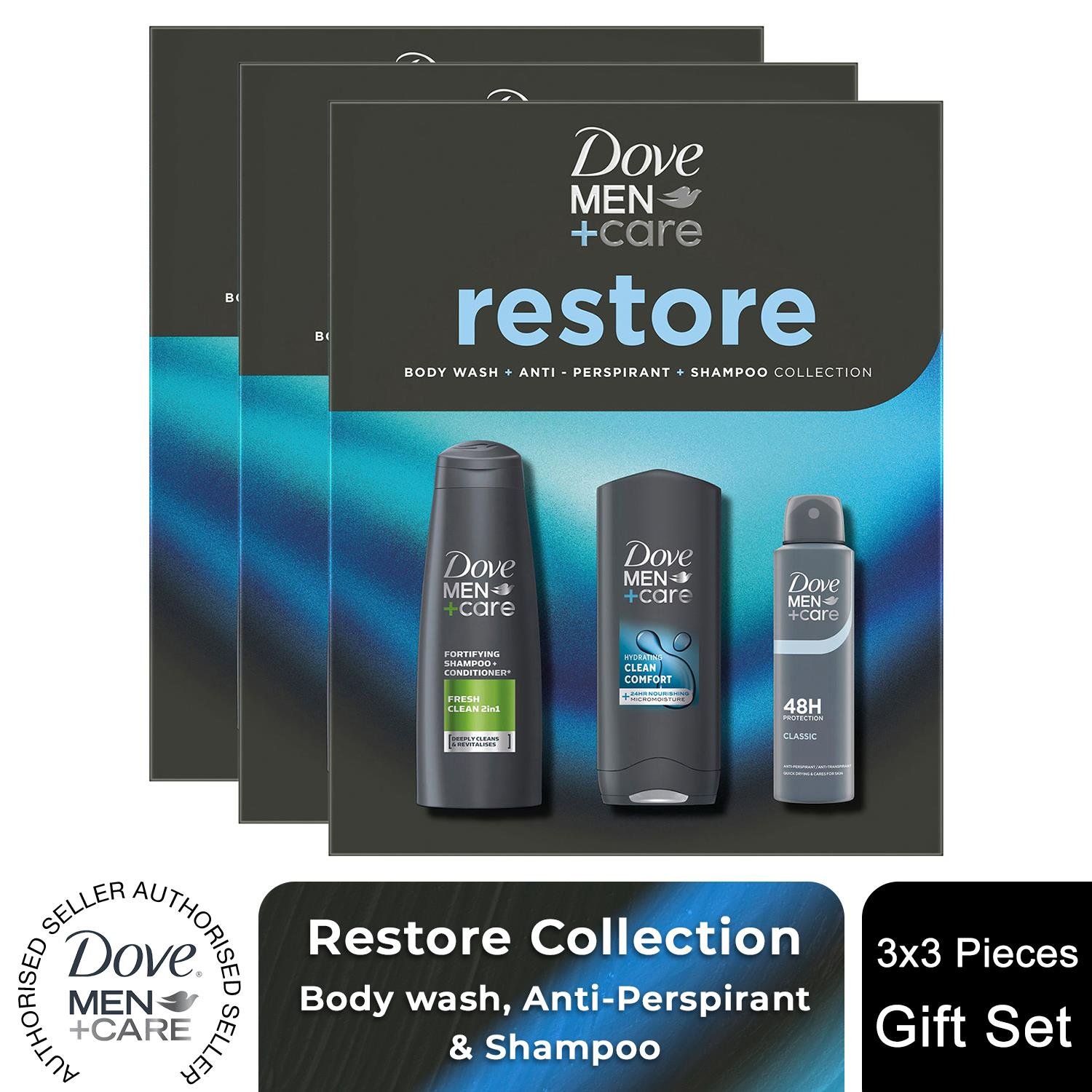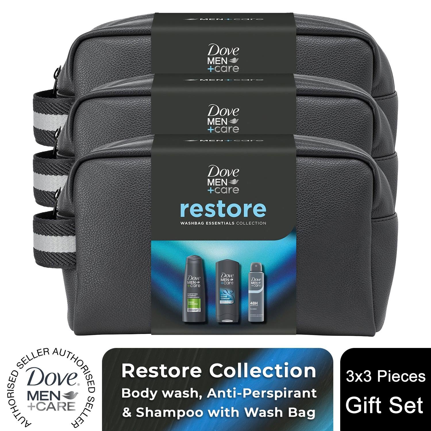 Dove (Buy 3) Men+Care Gift Set Restore Trio - Bodywash, Classic Deodorant, Shampoo