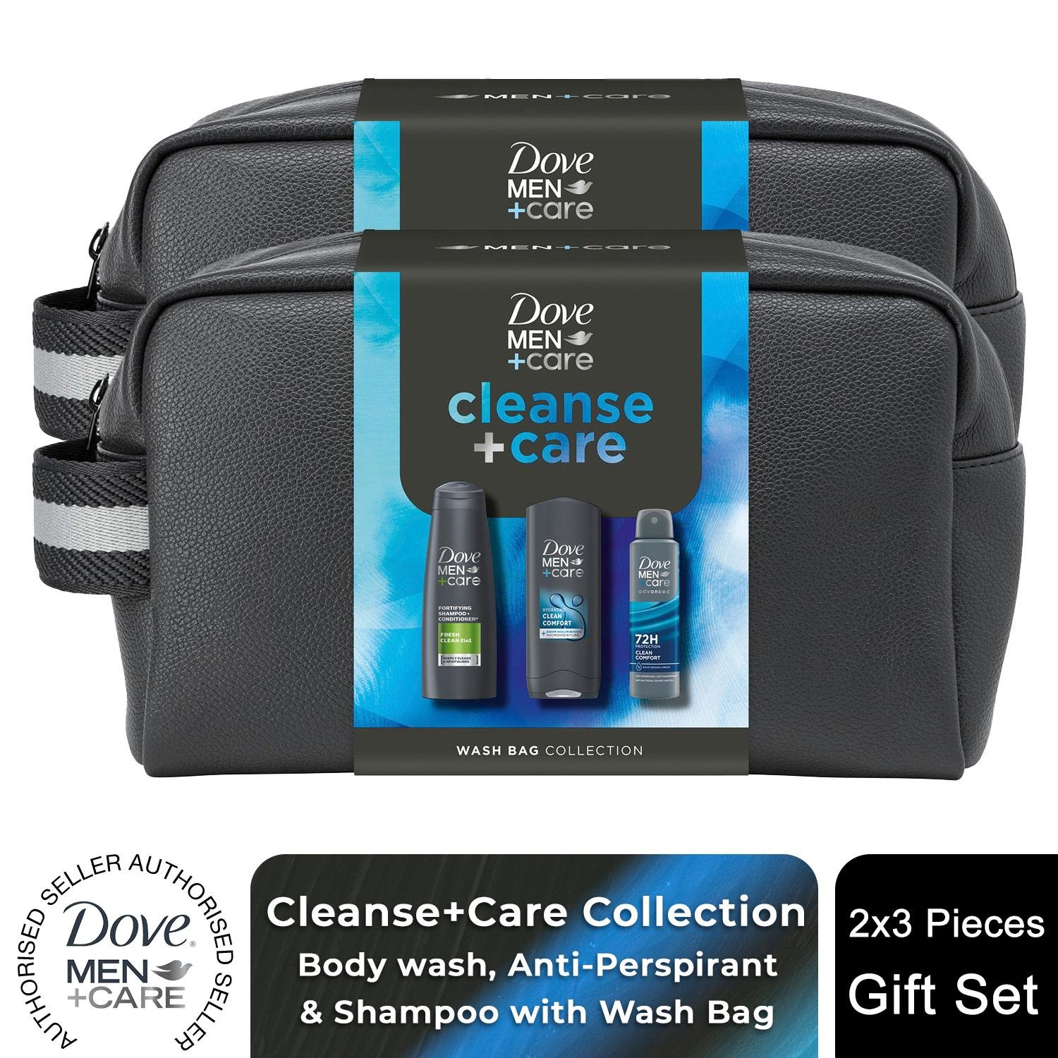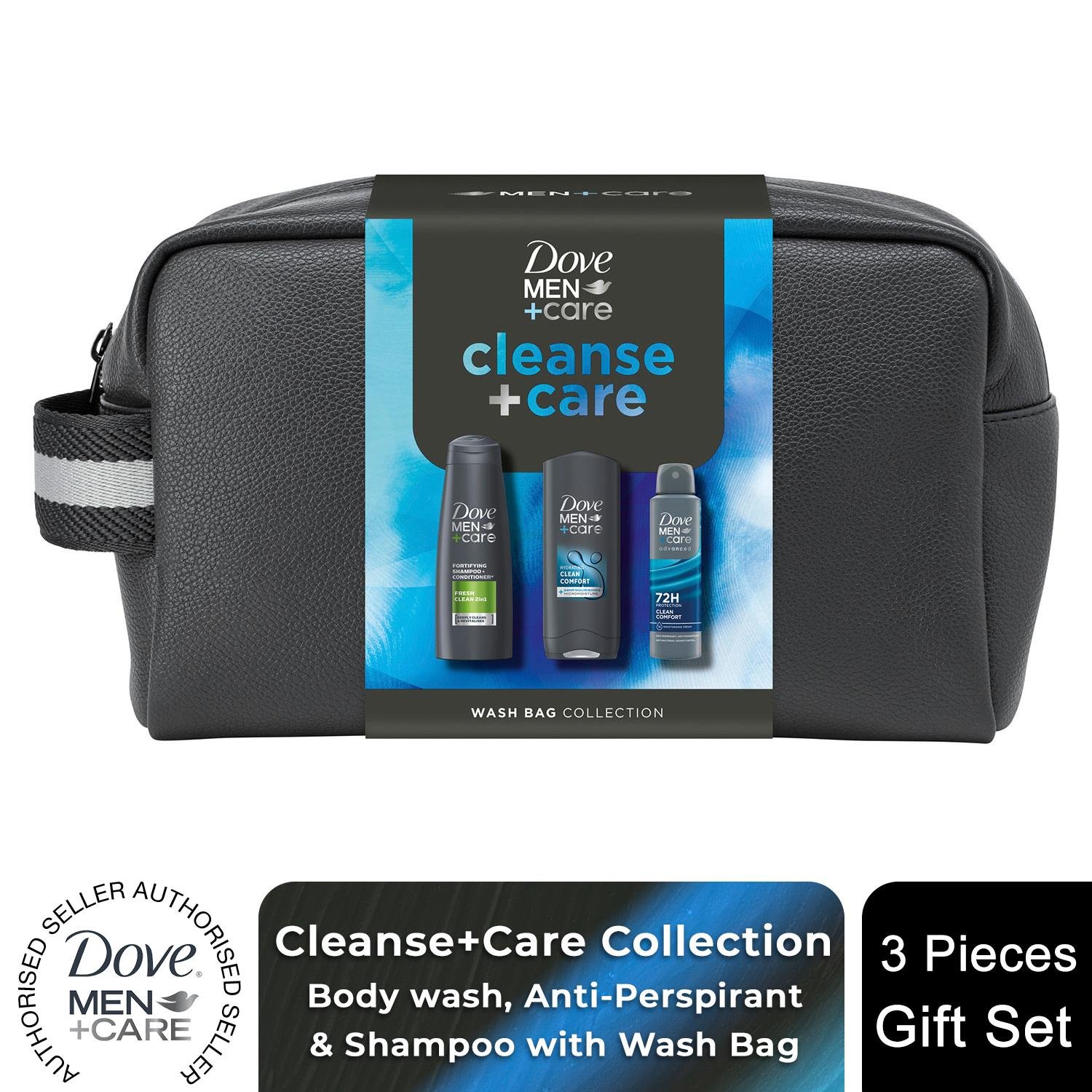 Dove Men+Care Gift Set Cleanse+Care Washbag, Bodywash, Deodorant & Shampoo