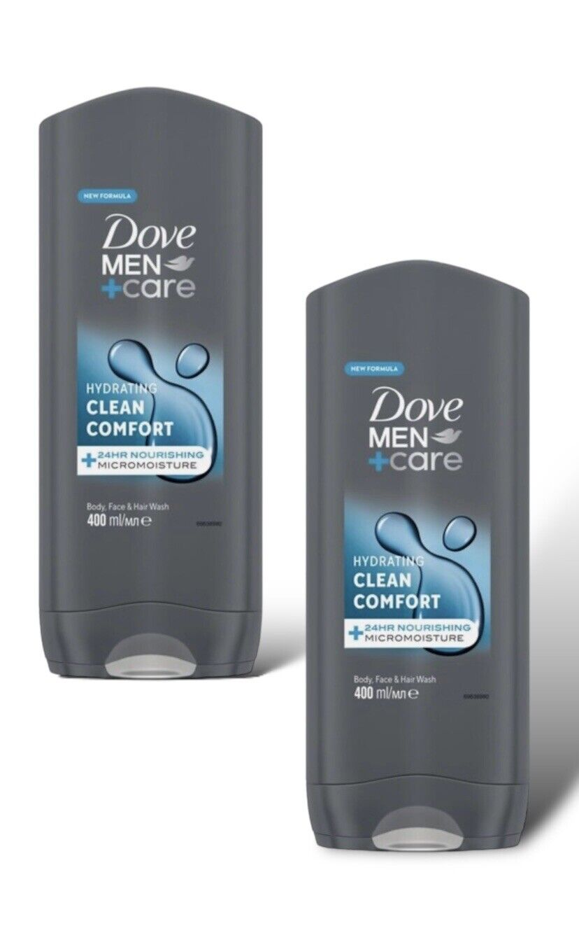 2x Dove Men+ Care Clean Comfort, 400 ml, Shower Gel, Shampoo and Face Wash