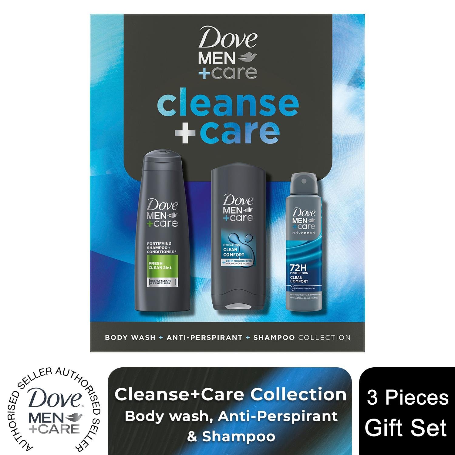 Dove Men+Care Gift Set Cleanse+Care Trio - Bodywash, Deodorant, Shampoo