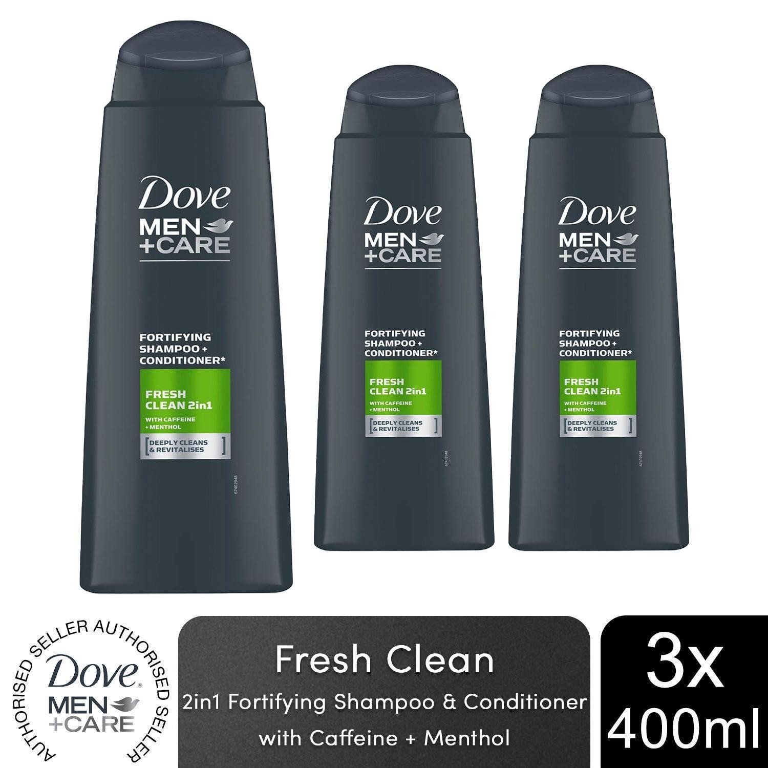 Dove Men+Care 2 in 1 Fortifying Shampoo & Conditioner, Fresh Clean, 3x400ml
