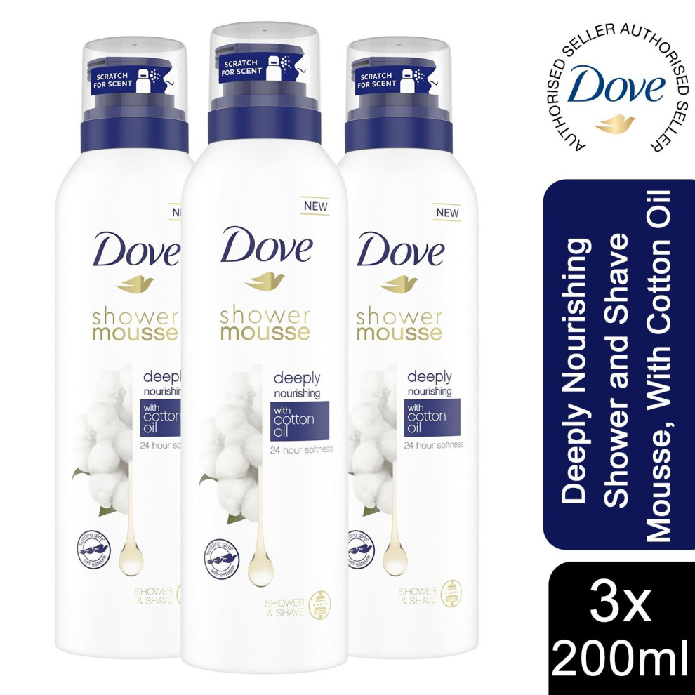 Dove Deeply Nourishing Cotton Oil Shower & Shave Mousse, 200ml - 3pack