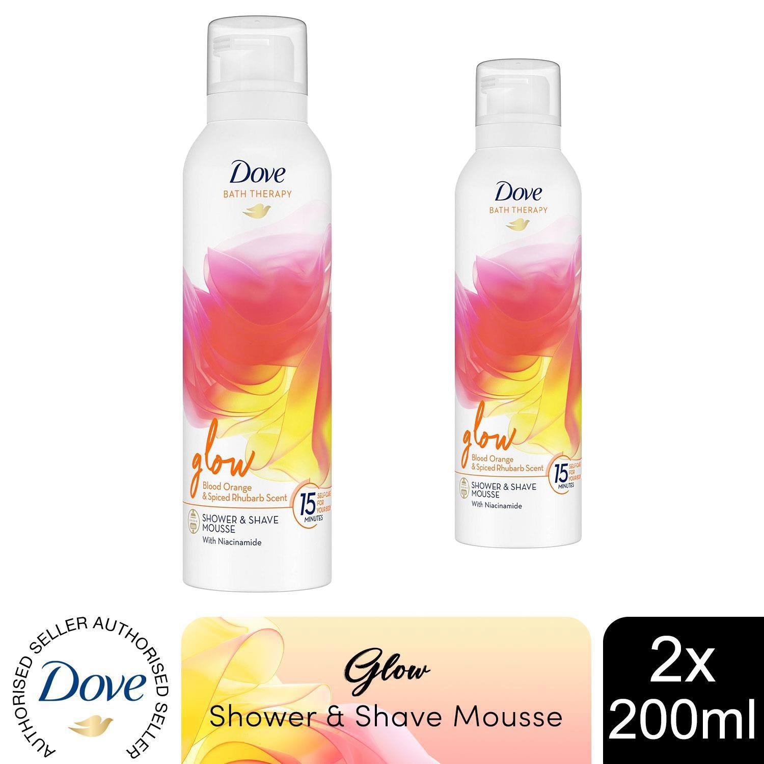 Dove Bath Therapy Glow Shower & Shave Mousse with Orange & Rhubarb Scent 2x200ml