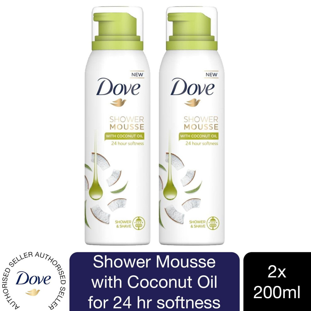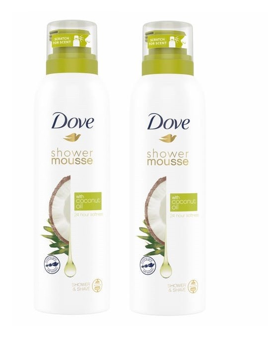 2 Pack Dove Shower Mousse with Coconut Oil for 24H Softness, 200ml