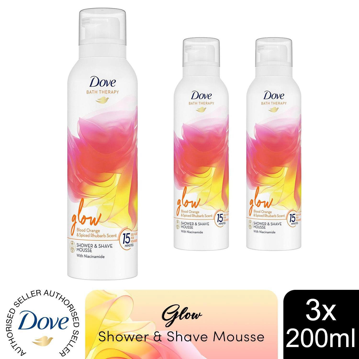Dove Bath Therapy Glow Shower & Shave Mousse with Orange & Rhubarb Scent 3x200ml