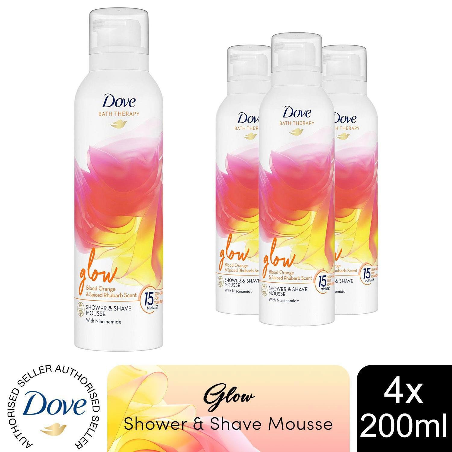 Dove Bath Therapy Glow Shower & Shave Mousse with Orange & Rhubarb Scent 4x200ml