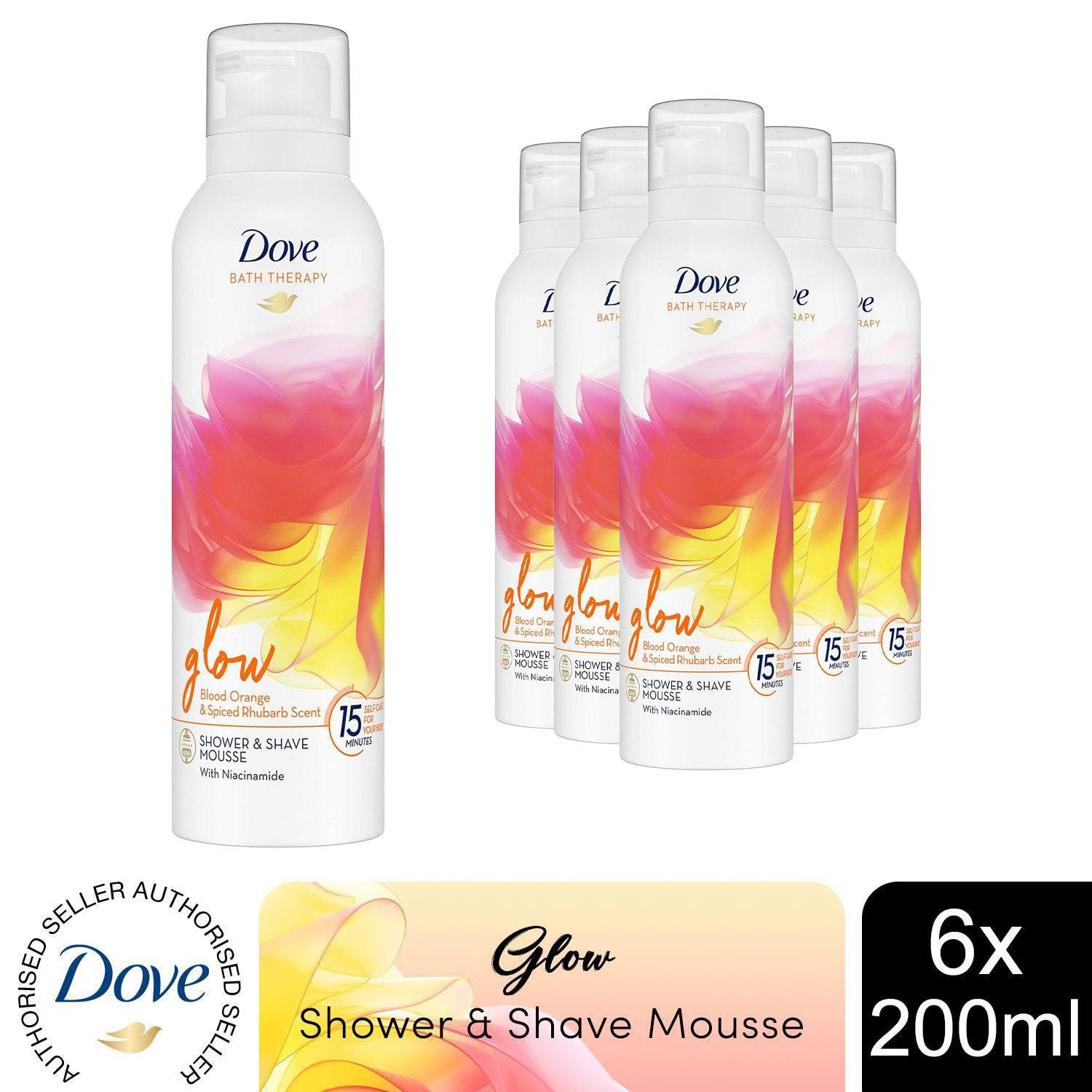 Dove Bath Therapy Glow Shower & Shave Mousse with Orange & Rhubarb Scent 6x200ml