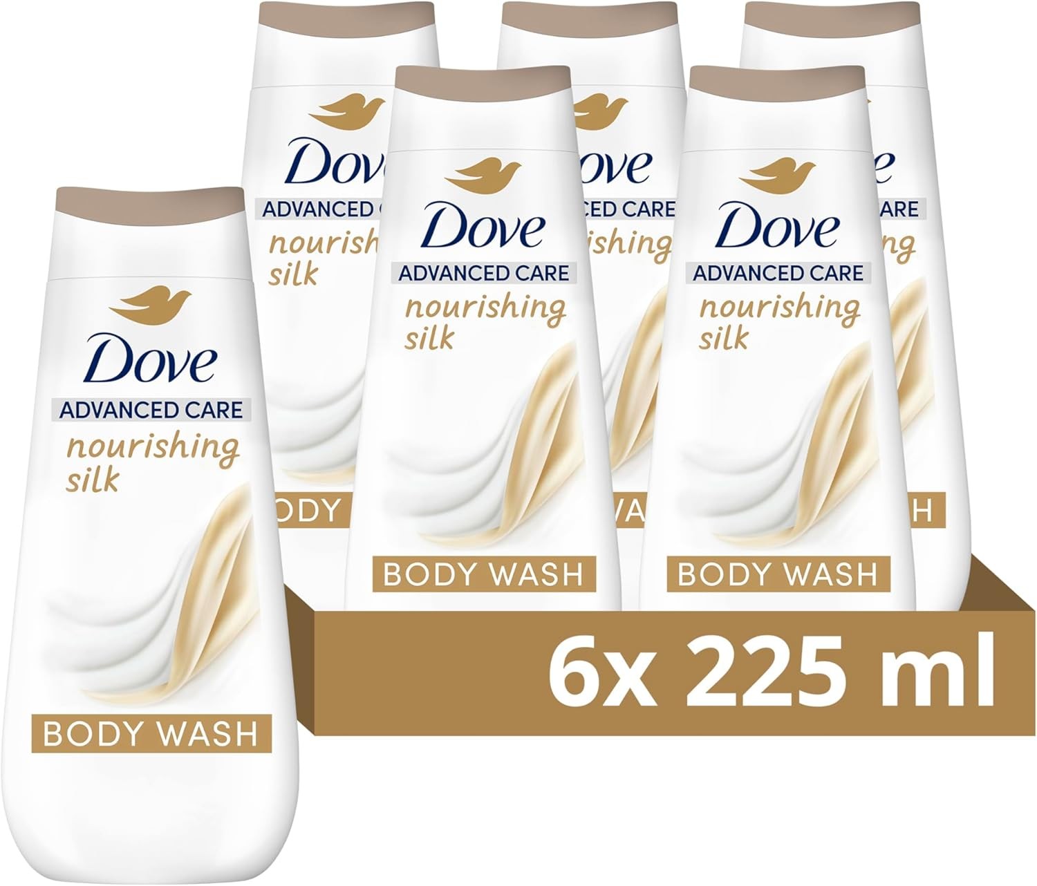 Dove Advanced Care Nourishing Silk Body Wash 225 ml (Pack of 6), Beige