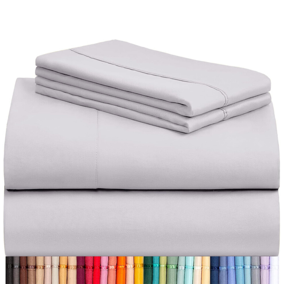 3-Pc Twin Sheet Set, Deep Pocket Wrinkle-Free Cooling Sheets for Hotel/All Agesâ1 Fitted, 1 Flat, 1 Pillowcase, Silky Soft Dove Gray
