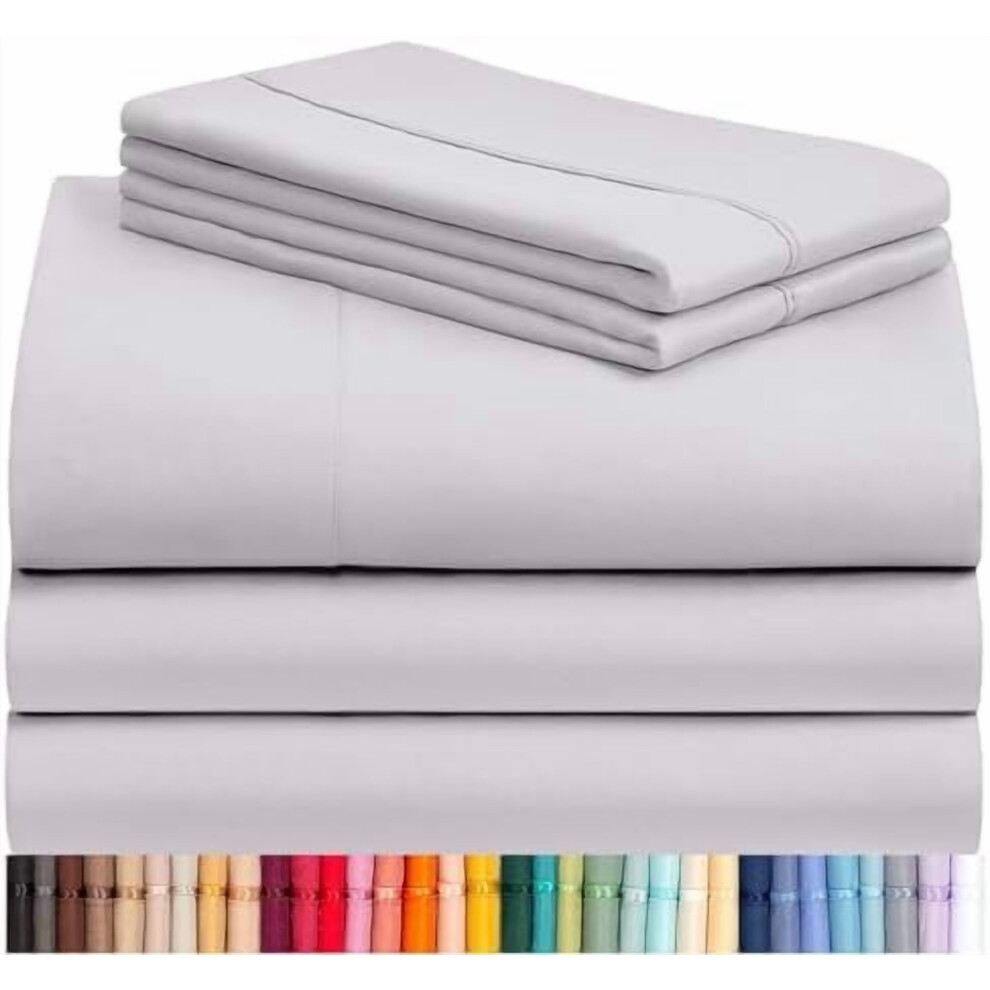 4 PC Sheet Set Bed Sheets Deep Pockets 16" Eco Friendly Wrinkle Free Cooling Machine Washable Hotel Bedding Silky Soft - Dove Gray King