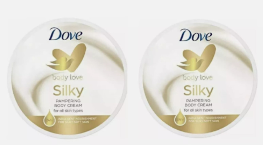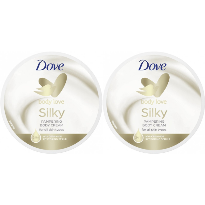 2 x 300ml Dove Silky Body Cream Tub Pampering Body Cream All Skin Types