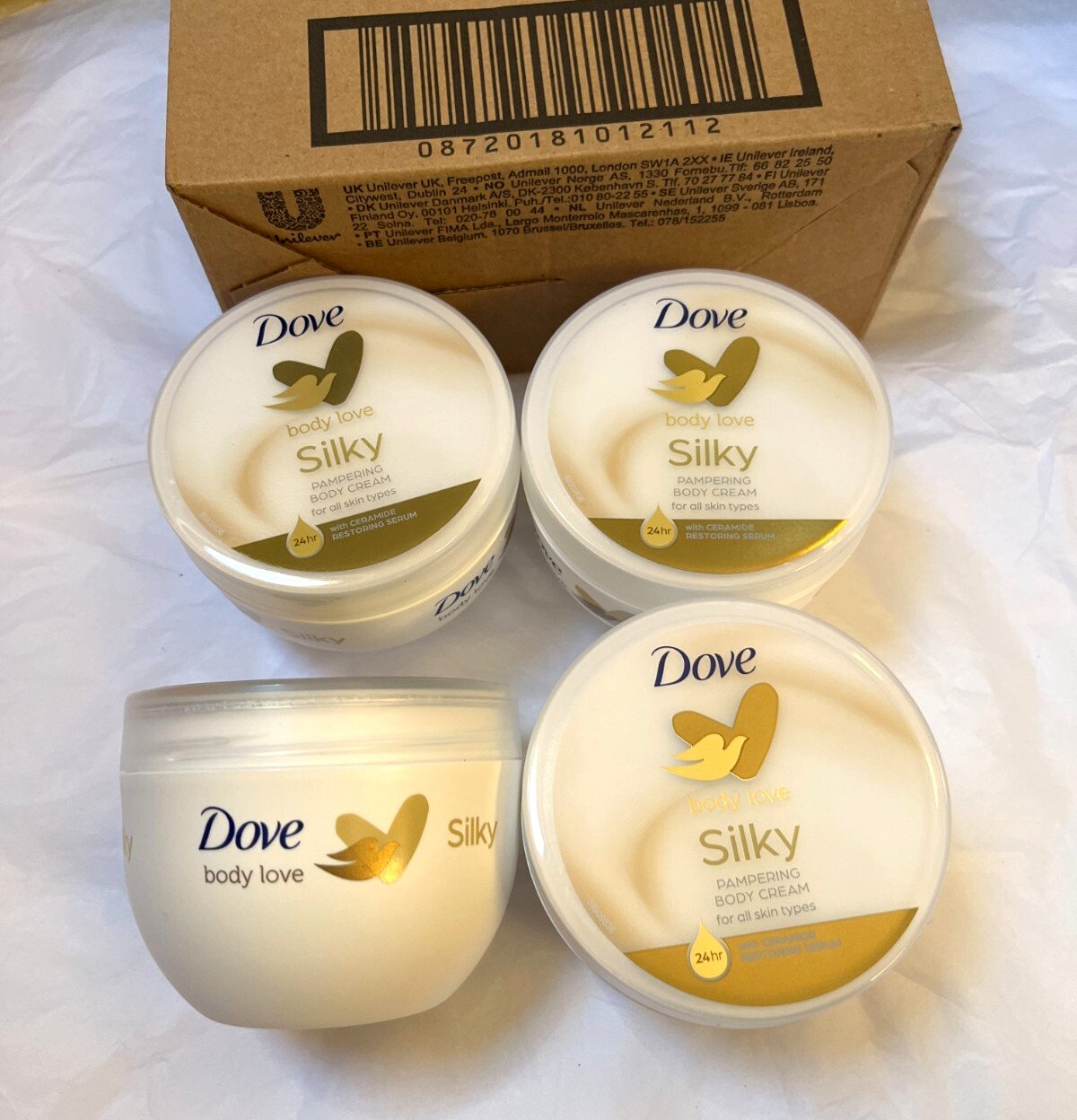 4 x 300ml Dove Silky Body Cream Lotion Pot Jar FREE TRACKED 48H POST
