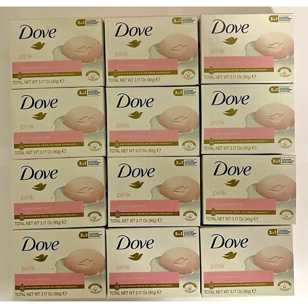 Dove Soap Pink Beauty Bar 12-Pack - 3-in-1 Moisturizing Face Body & Hand Soap 4.75 Oz Ea