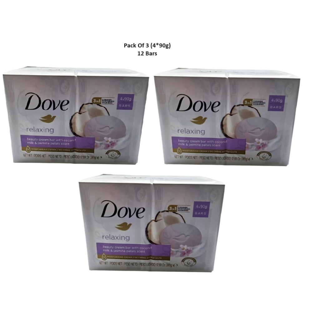 3 X Dove Relaxing Beauty Bar Soap 4 X 90g (12 Bars)