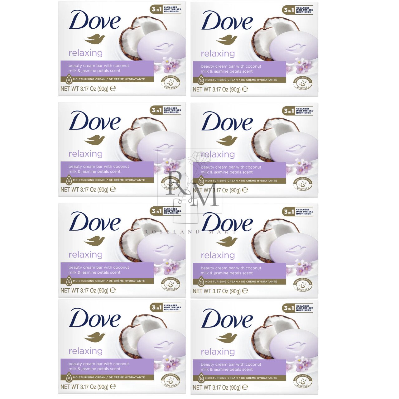 8 x Dove Relaxing Beauty Bar Soap with Coconut Milk & Jasmine Fragrance 90g