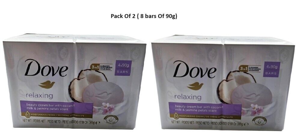 2 X Dove Relaxing Beauty Bar Soap with Coconut Milk & Jasmine 4 X 90g (8 Bars)