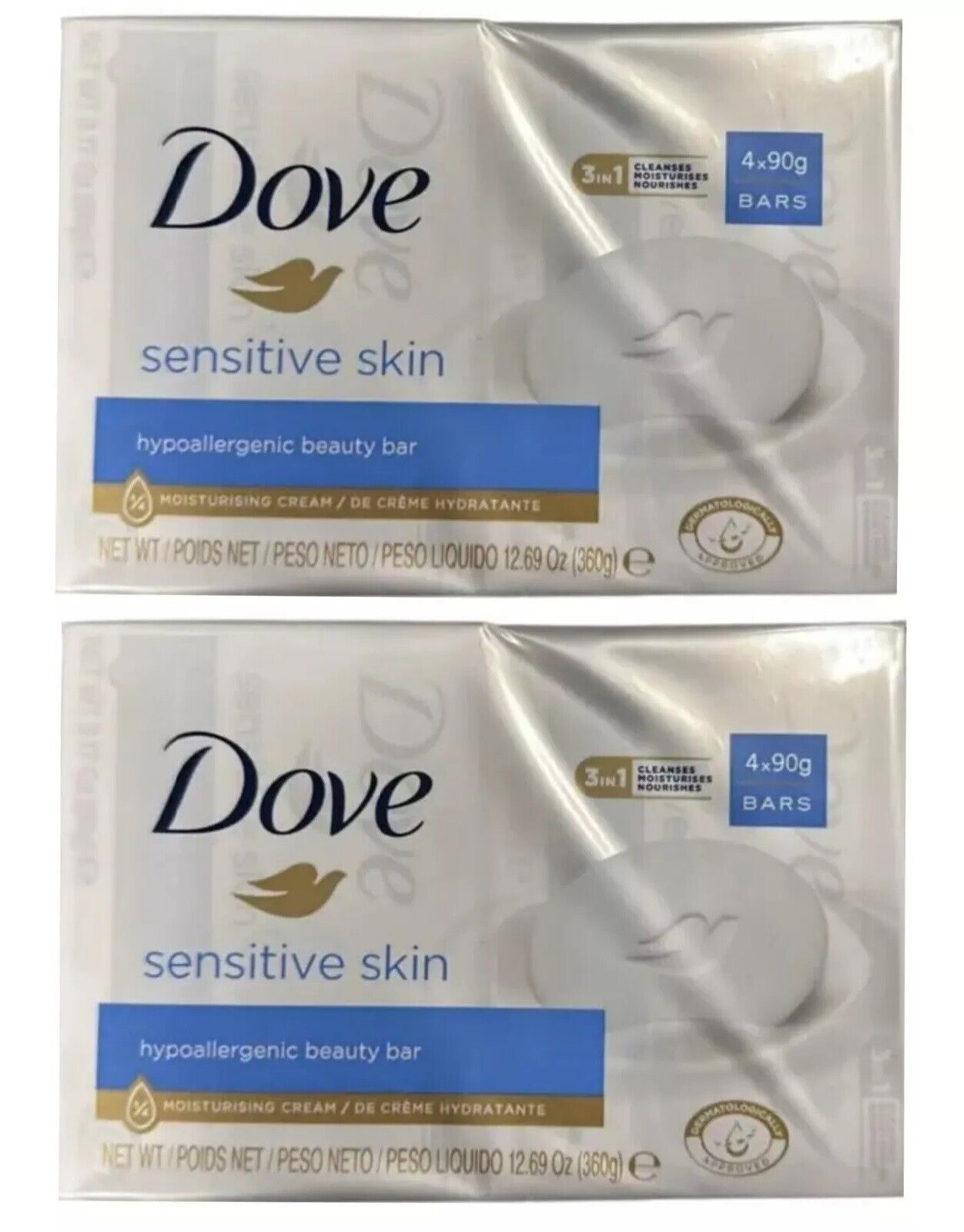 2 X Dove Sensitive Skin Hypoallergenic Beauty Bar Soap (8soaps Total)