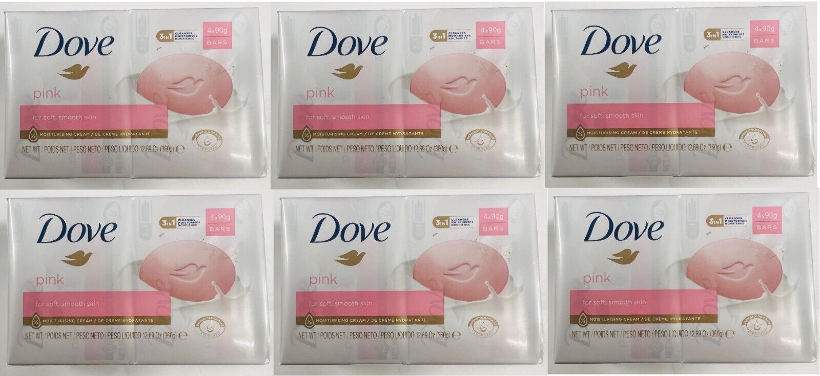 6 X Dove Pink Beauty Bar Soap 4 x 90g (24 soaps Total)