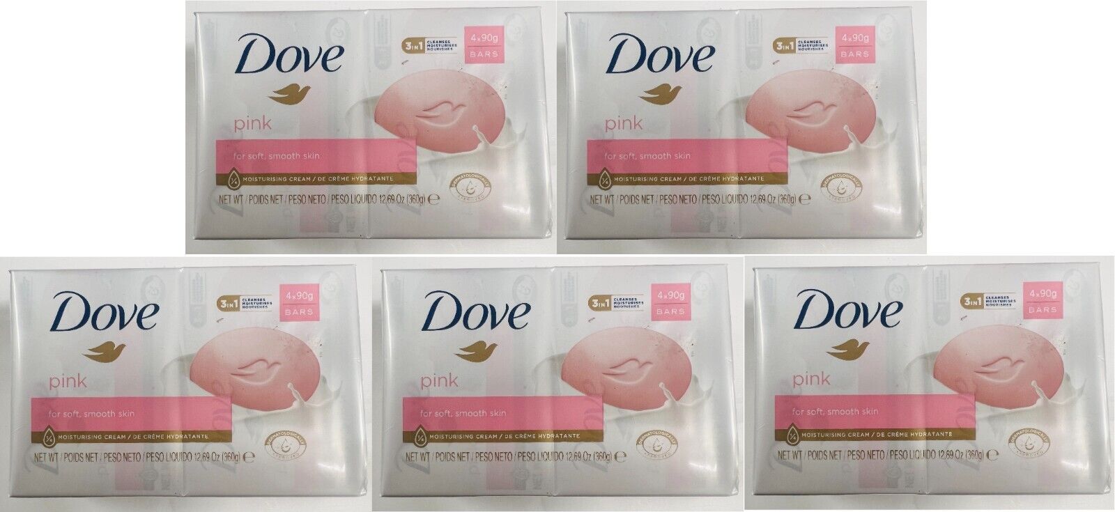 5 X Dove Pink Beauty Bar Soap 4 x 90g (20 soaps Total)