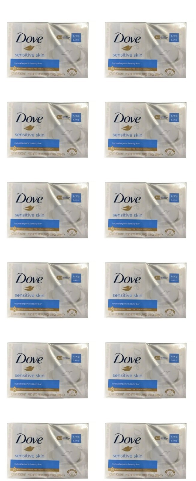 12x Dove Sensitive Skin Hypoallergenic Beauty Bar Soap 4 x 90g (48 Soaps Total)
