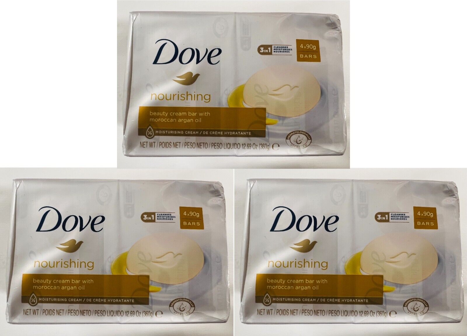 3 X Dove Nourishing Beauty Cream Bar Soap 4 X 90g (TOTAL 12 BARS)