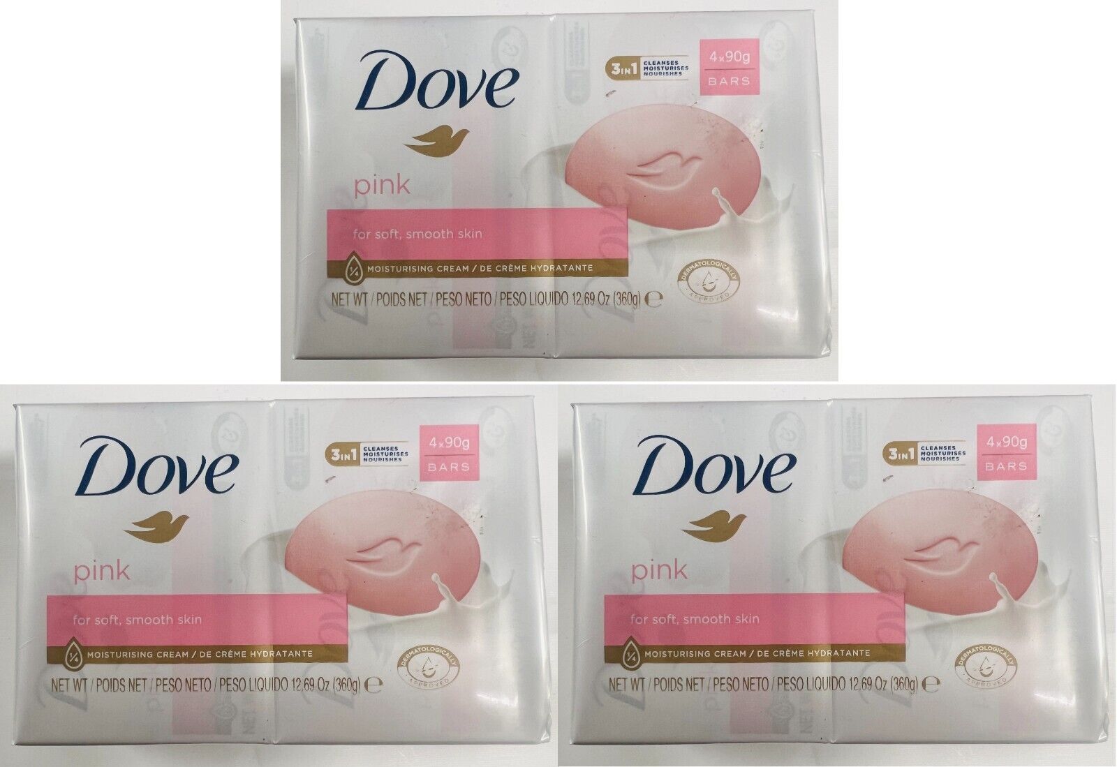 3x Dove Pink Beauty Bar Soap 4 x 90g (12 soaps Total)