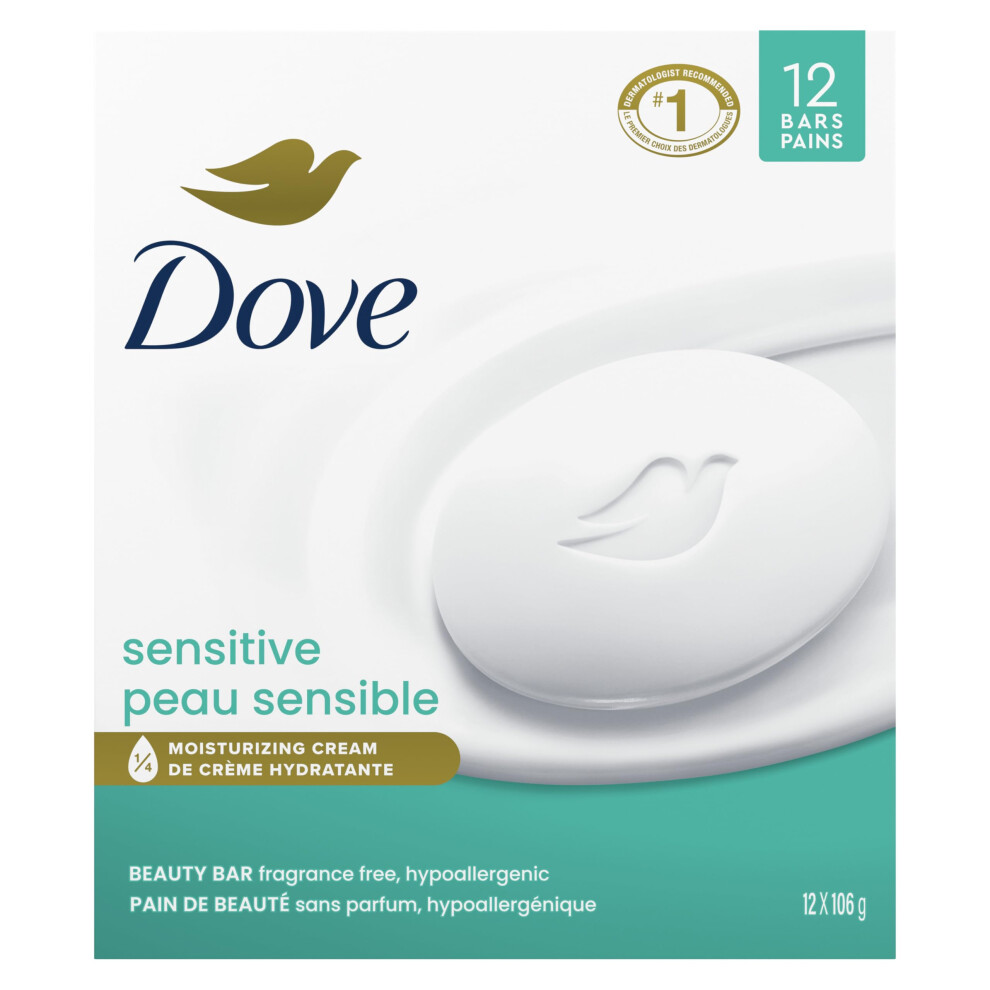Dove Beauty Bar Soap 12 Bars Sensitive for Sensitive Skin Fragrance Free and Hypoallergenic 3.75 oz