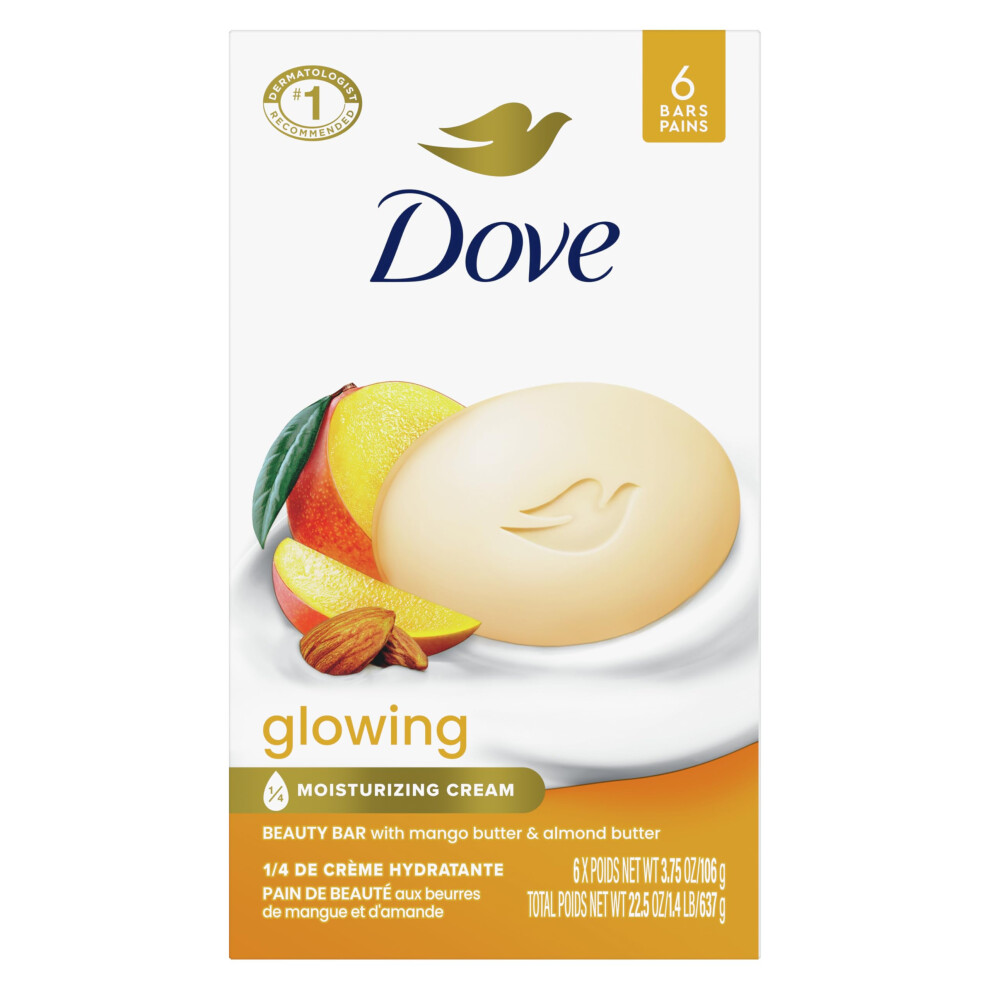 Dove Beauty Bar Soap Glowing Mango & Almond Butters 6 Bars for Radiant Skin Illuminates Skin 3.75 oz