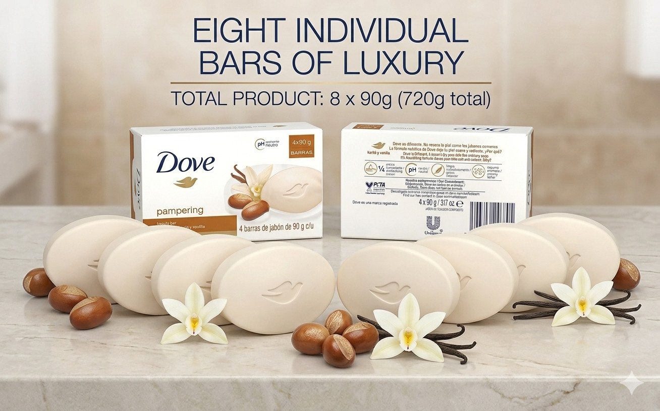 Dove Pampering Shea Butter & Vanilla Beauty Bar Soap 8 Pack (2x 4x90g Boxes)