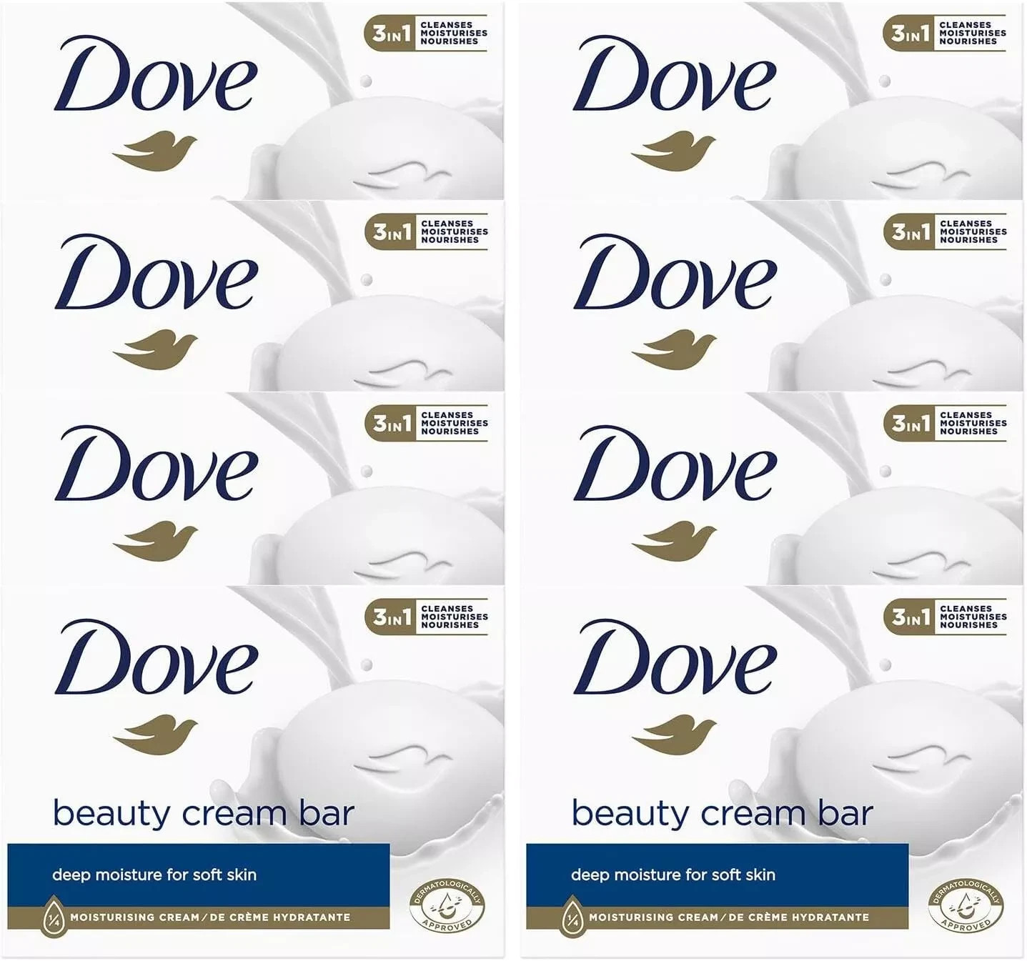 Dove Orginal Beauty Cream Bar 3 in 1 Cleanses, Moisturises and Nourishes Sulphate-Free Bath Soap for Soft and Smooth Skin, Suitable for Daily Use, 8x90g