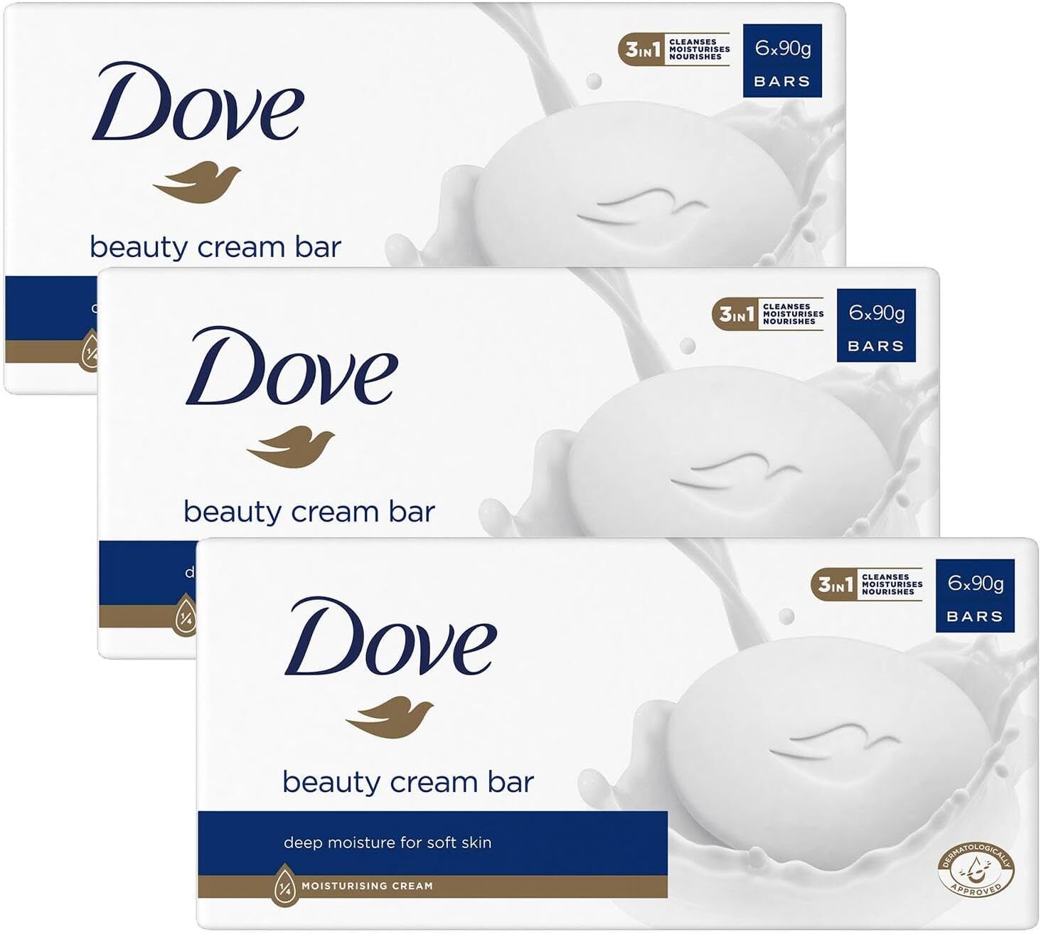 Dove Original Beauty Cream Bar 3 in 1 Cleanses, Bath Soap 6 x 90g