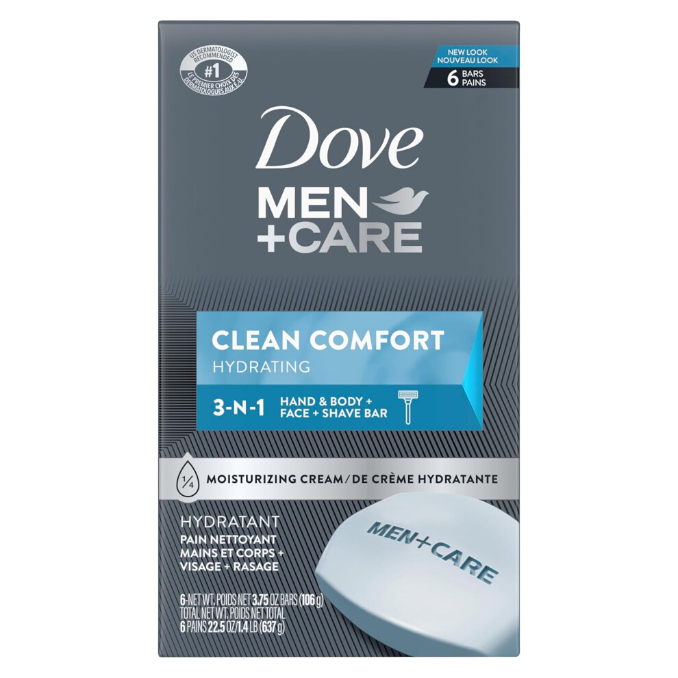 Dove Men+care Body Soap and Face Bar to Hydrate Skin clean comfort More Moisturizing Than Bar Soap 375 oz 6 Bars